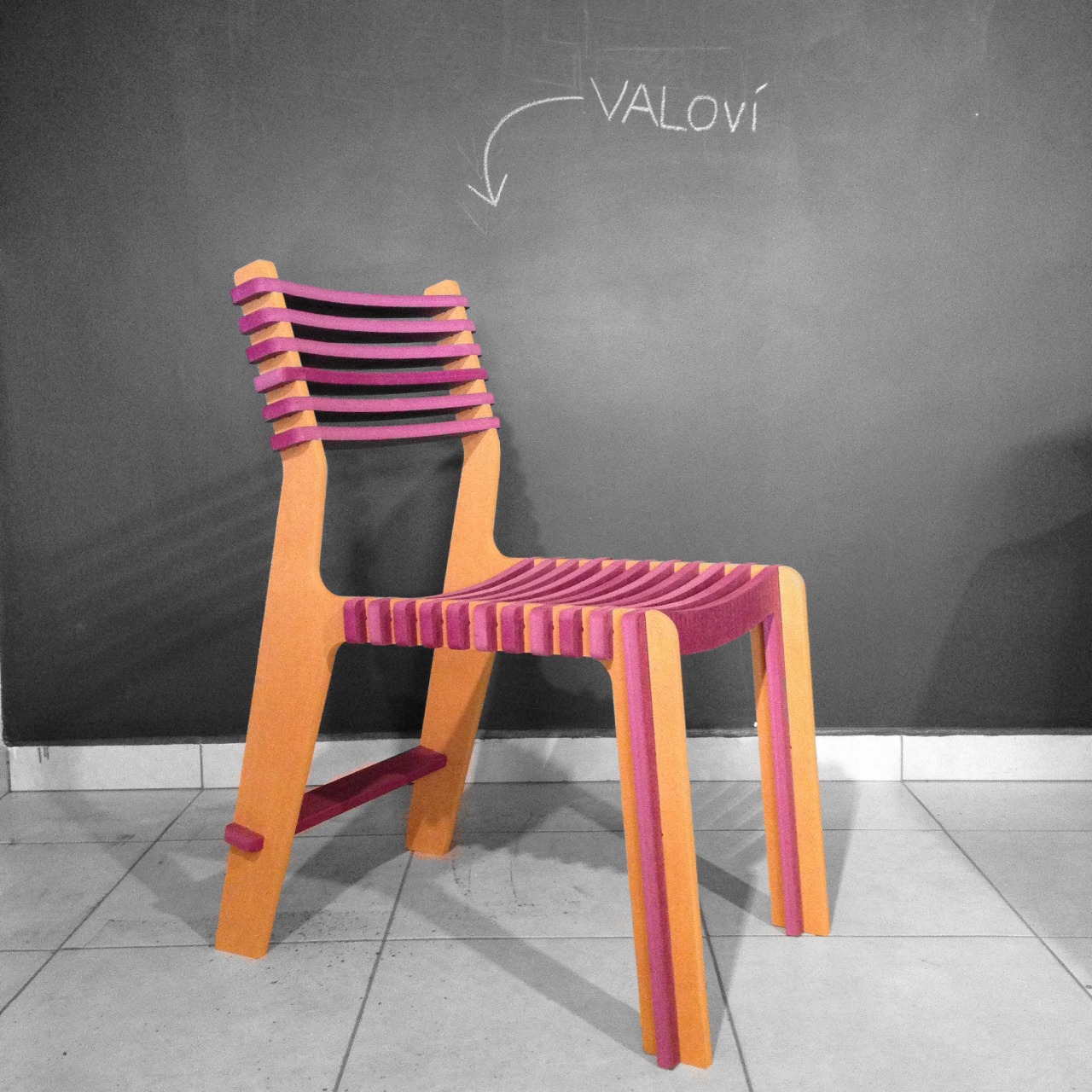 O MDF Valchromat é colorido por todo o seu miolo e não possui melanina, ou seja, ao finalizar o corte já está pronta a peça, é um material não tóxico, pois é usado o mesmo pigmento na linha textil para o seu tingimento, é fabricado 100% de madeira pinus e livre de todas as impurezas geradas pelo processo de extração da fibra, com isso se obtem uma vida útil maior das serras e fresas, hoje são 12 cores no total podendo ser combinadas em diversas situações. Valchromat é produzido em diferentes cores, dimensões e espessuras.